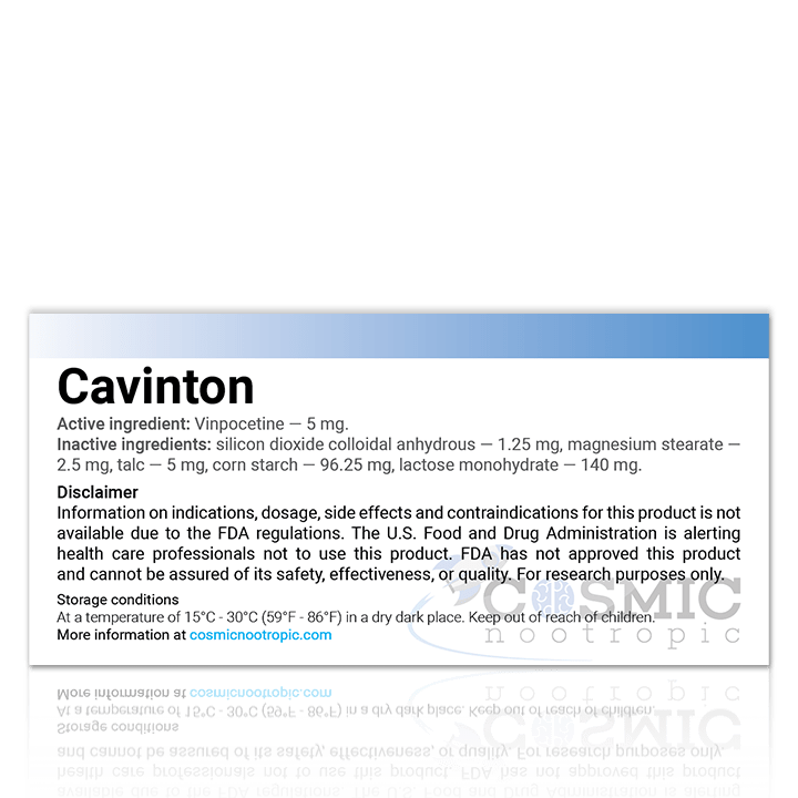 You can buy Vinpocetine online from different vendors. CosmicNootropic offers Vinpocetine (Cavinton) in packs of 50x5mg pills. We offer fast US delivery and worldwide shipping with volume discounts! Always be sure to do your research before purchasing any nootropic supplement to ensure you are getting a quality product.